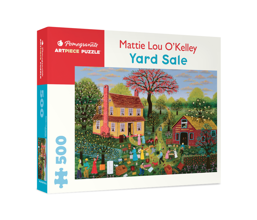 Mattie Lou O’Kelley utilizó colores brillantes y vívidos para crear pinturas de paisajes de su vida temprana en la Georgia rural. En esta resplandeciente escena primaveral reproducida para este rompecabezas de 500 piezas, la artista incluye una gran cantidad de detalles para representar recuerdos de una venta de garaje local. La niña pequeña sentada en la puerta puede ser un autorretrato de O’Kelley.