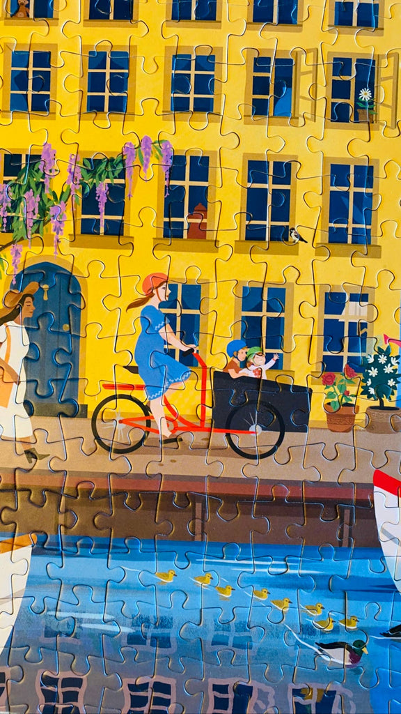 Este asombroso rompecabezas de 1000 piezas presenta a Nyhavn en Copenhague en una fresca mañana de verano.