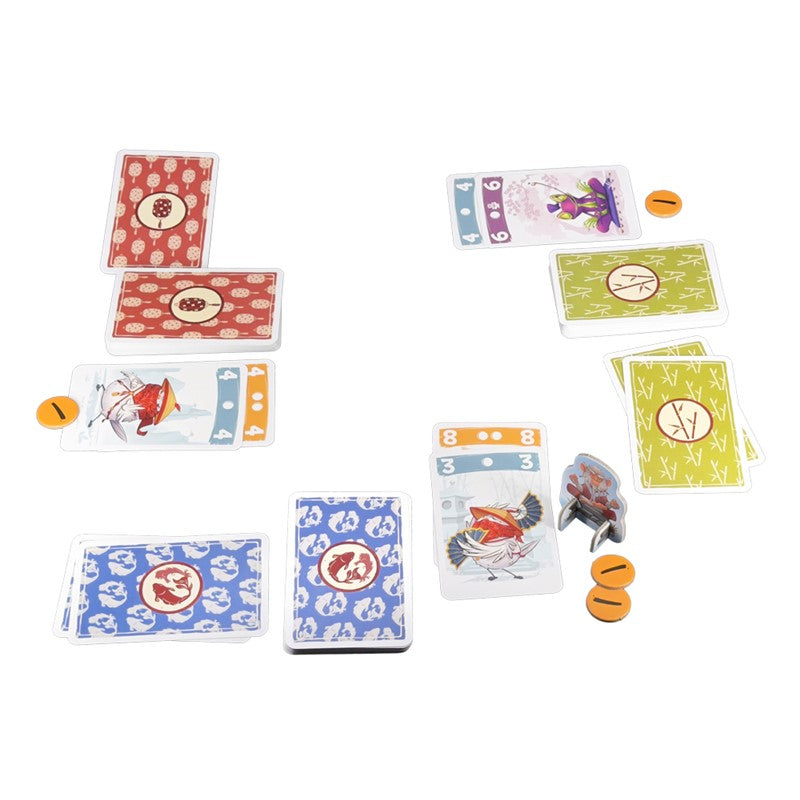 Juega a tus ninjas en el momento adecuado para evitar llevarte fichas con puntos de penalización. ¡Quien tenga menos puntos al final de las tres fases ganará el juego!