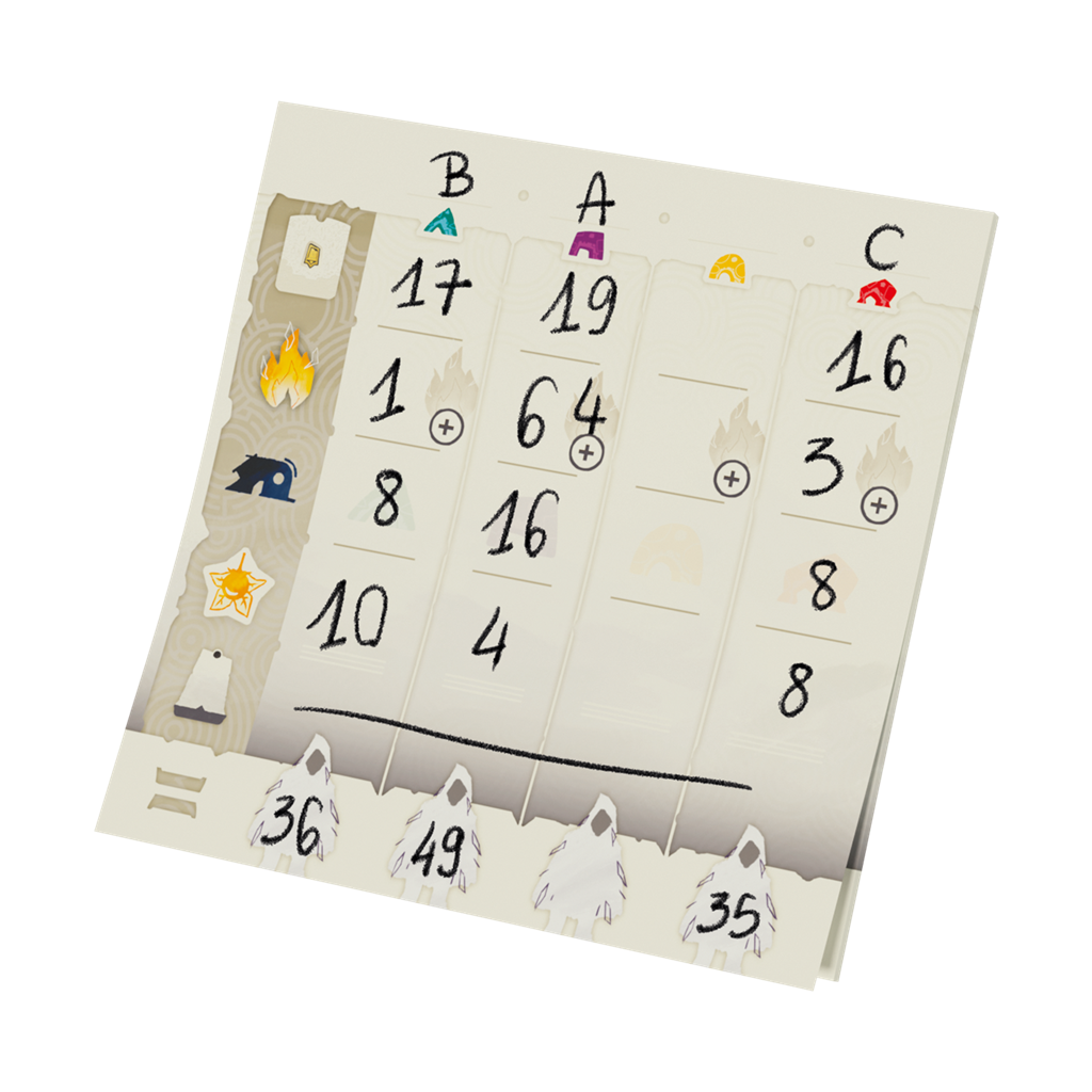 Para ganar en Dewan, competiréis entre vosotros por obtener la mayor cantidad de puntos. Lo haréis colocando vuestros Campamentos de forma estratégica para hacer el mejor uso del terreno y de los recursos, y así satisfacer los requisitos indicados en vuestras piezas de Historia. Durante la travesía, también recolectaréis bayas y dominaréis el fuego para obtener puntos adicionales.