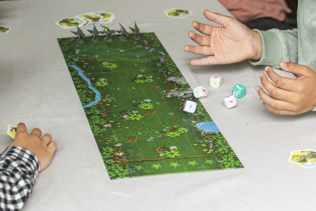 Juego de planificación avanzada y estrategia cuyo objetivo es lograr que los raptores de nuestra carta sean los mejor posicionados al final de la carrera, para lograr así el mayor número de puntos. Por turnos, los jugadores/as lanzan los dados y hacen avanzar los raptores correspondientes por la jungla o el desierto, según mejor les convenga. Incluye un tablero a doble cara con dos grados distintos de dificultad.